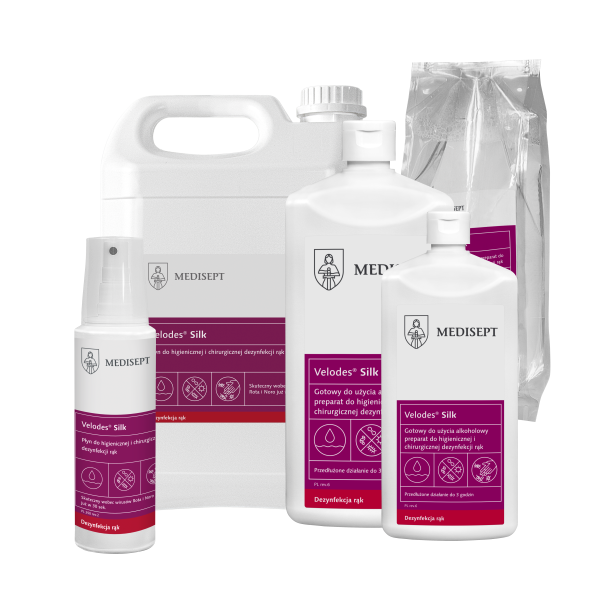 Velodes® Silk to alkoholowy, gotowy do użycia produkt przeznaczony do higienicznej i chirurgicznej dezynfekcji rąk w obszarze medycznym, sektorze żywnościowym, w warunkach przemysłowych i domowych oraz w zakładach użyteczności publicznej, a także do dezynfekcji powierzchni mających i niemających kontaktu z żywnością – jako produkt biobójczy.