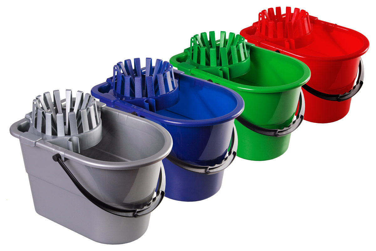 Charakterystyka: wiadro plastikowe 14l. z wyciskaczem, różne kolory