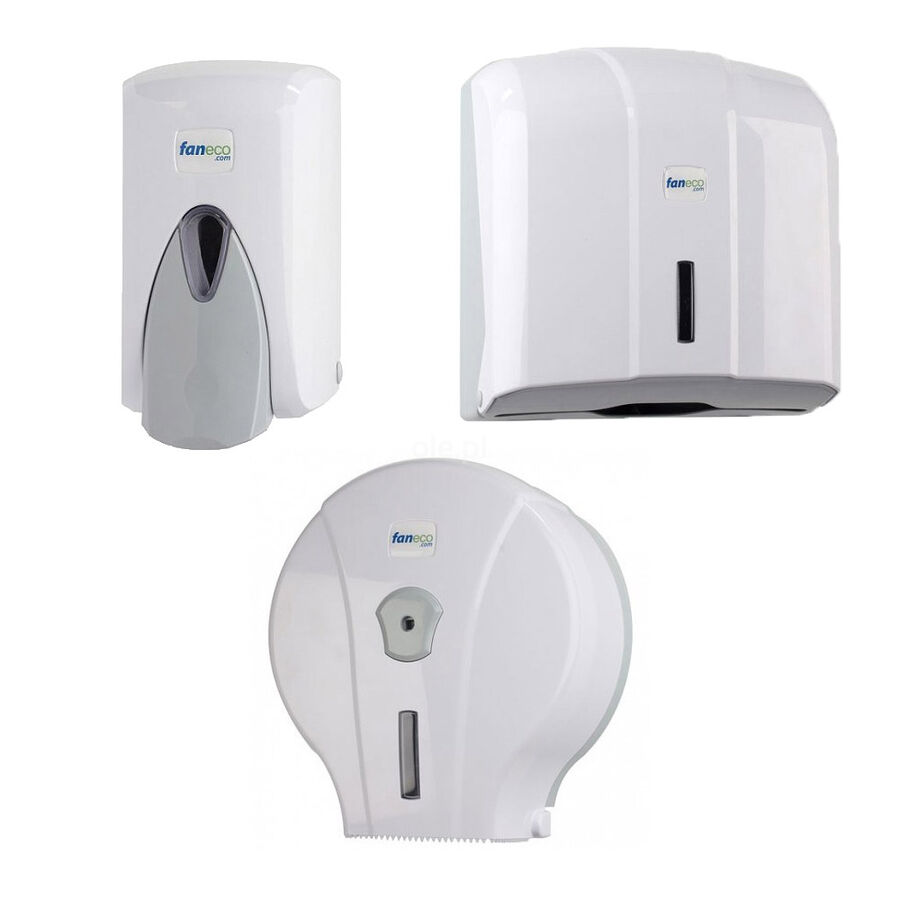Zestaw: pojemnik na papier. podajnik ręczników i dozownik mydła w płynie